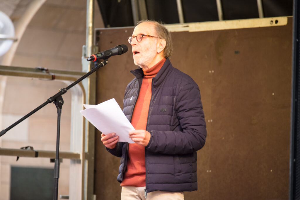 Dies griff auch Zwi Rappoport als Vorsitzender von der Jüdischen Gemeinde Dortmund in seinem Redebeitrag vor der Reinoldikirche auf: „Seit dem 7. Oktober tritt Judenhass offener, aggressiver und lauter zutage – oftmals getarnt als Kritik an Israel, tatsächlich jedoch als Hetze gegen Jüdinnen und Juden.“