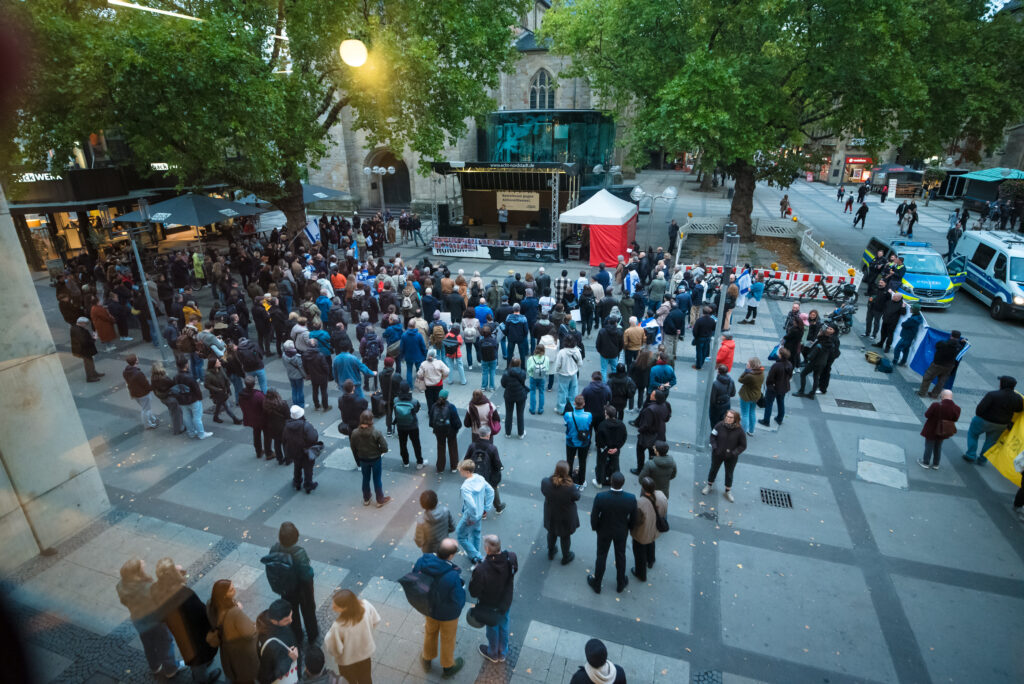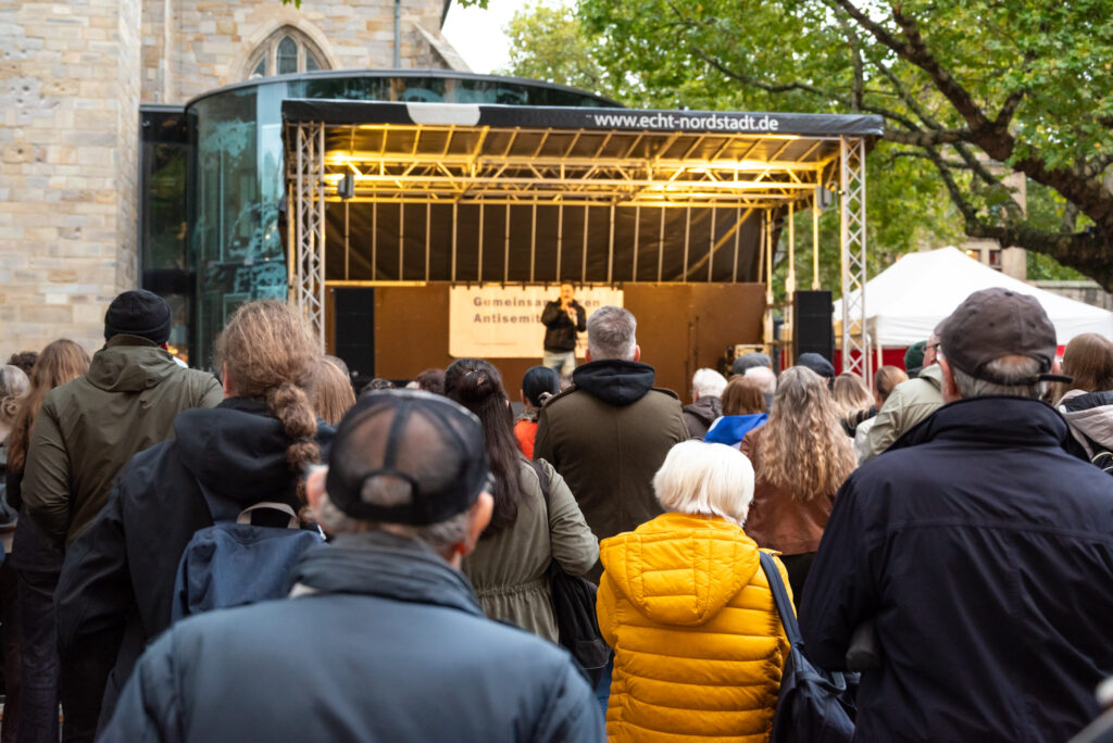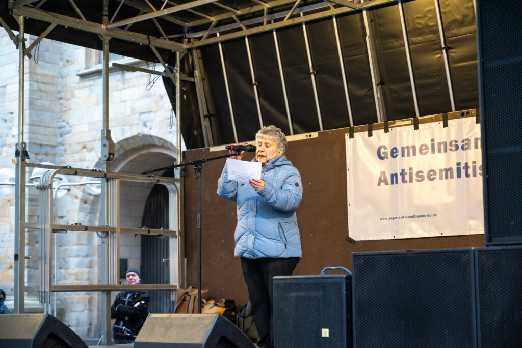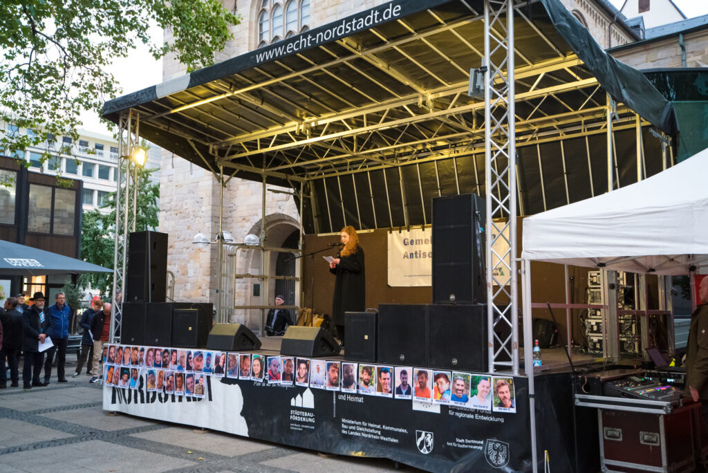 Am 9. Oktober 2025 hatte „Netzwerk zur Bekämpfung von Antisemitismus in Dortmund“ zu einer Solidaritätskundgebung unter dem Motto „Gemeinsam gegen Antisemitismus“ aufgerufen. Im Mittelpunkt standen der Terrorangriff der Hamas auf Israel am 7. Oktober 2023, der seither weltweit zu einem rapiden Anstieg antisemitischer Vorfälle führt. Ebenso lag der Blick auf den sechsten Jahrestag des Anschlags in Halle am 9. Oktober 2019, bei dem ein bewaffneter Neonazi versuchte, in eine Synagoge einzudringen und zwei Menschen tötete. Über 200 Personen nahmen an der Kundgebung teil und hörten dort verschiedene Redebeiträge.