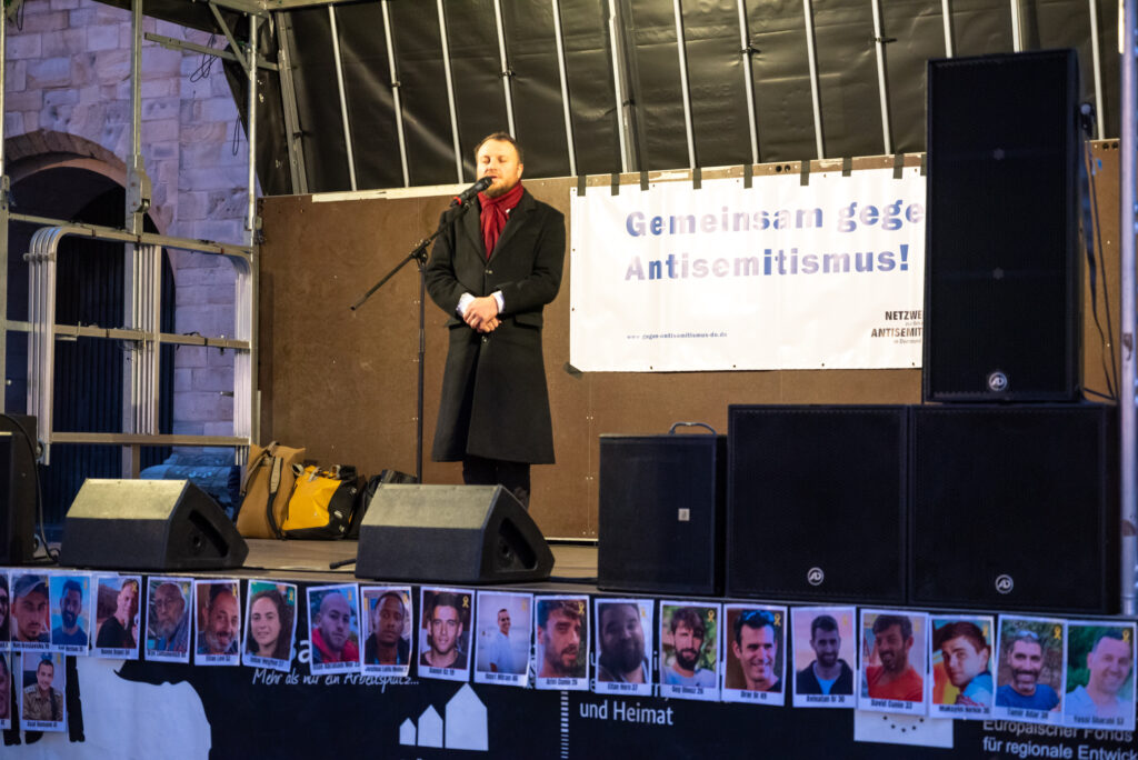 Neben den inhaltlichen Redebeiträgen sang Abraham Goldberg, Kantor der Jüdische Gemeinde Dortmund zwei Lieder zur Erinnerung an die Opfer und Geiseln des Terrorangriffs der Hamas. Zum Abschluss sprach Rabbiner Avigdor Nosikov das Totengebet El Male Rachamim. Auf diese Weise konnte auch in diesem Jahr mit der Kundgebung wieder ein Ort geschaffen werden, an den Menschen zusammen konnten, um an Opfer antisemitischer Gewalt zu erinnern, Solidarität mit den Betroffenen zu zeigen und ein Zeichen gegen Antisemitismus zu setzen. Das dies notwendig ist, wurde in den Reden auf der Kundgebung deutlich gemacht. Das Netzwerk zur Bekämpfung von Antisemitismus bedankt sich bei allen Teilnehmenden und Unterstützer*innen der Kundgebung.